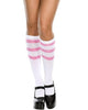 These White and Pink Triple Striped Knitted Knee High Socks have three pink stripes at the top. A knitted style, perfect for your sports or school themed get up.