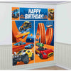 Make a scene at your next Hot Wheels party with this fast-car Hot Wheels Wild Racer Scene Setter! Featuring lots of different Hot Wheel favorites on a track, and the words 'Happy Birthday' this scene setter is a vibrant option for a colourful birthday!