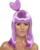 This Katy Candy Queen Lilac Wig with Heart Headband is just the thing to get the pop diva look. The heart is attached to a headband so you can wear the wig with or without it. A nice glossy wig with a straight fringe/bangs. Wear a wig cap underneath to keep your own hair under wraps.