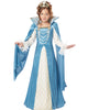 Look like royalty in this elegant Lady Guinevere Womens Plus Size Costume. This costume comes with a long teal dress with bell sleeves, a gold pattern along the bust, and a ribbon belt. A gold half crown is also included to complete the look.