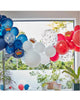 Each pack contains: 65 Balloons with card crowns, including: 2 x 18in, 8 x 12in, 7 x 10in and 3 x 5in Navy Balloons, 1 x 24in, 1 x 18in, 8 x 12in, 7 x 10in, 4 x 5in Red Balloons, 1 x 24in, 1 x 18in, 8 x 12in, 6 x 10in, 3 x 5in White Balloons, 2 x 18in, 3 x 12in Clear Balloons with Crown Confetti 5 x Card Crowns measuring 140mm (H) x 158mm (W) 5m of balloon tape, 40 x Glue Dots and 3m Jute Twine included for assembly.
