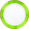 Premium Plastic Plates Hot Stamped with Kiwi Green Border Pack of 20