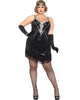 This Foxtrot Flirt Flapper Womens Costume is perfect for your next 1920's theme party. This costume comes with a black sequin dress with fringe trim and zig-zag hem with a matching black sequin headband.