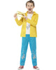 This Roald Dahl Charlie Bucket Boys Costume features a yellow jacket with an attached white top and blue pants both spattered with 'dirt' detail to highlight Charlie's hardship. A golden ticket is also included for your entry into Willy Wonka's famous Chocolate Factory. Don't lose it!