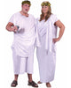 There ain't no party like a toga party. Get ready for a wild time with this Toga Plus Adult Costume for men and women. This Greek style tunic in white has a shoulder drape sewn right in, and the standard sizing is generously sized. The gold laurel wreath headdress will be your crowning glory and is also generously sized. The cheesecloth like fabric has been steamed in the image and needs to be styled to achieve this look. We advise white clothing is worn beneath this toga as the fabric is slightly sheer.