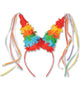 Whether you're attending a Mexican fiesta or a colourful rainbow party, if you walk in wearing this Fiesta Pinata Headband you'll sure be the talk of the party. You'll become the life of the party! This headband features 2 cones covered in colourful tissue with colourful ribbons attached at the tips and draping down, all attached to a red plastic headband. Watch out for swinging sticks!