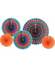 Dazzle your guests when they walk through the doors of your fabulous party and see this Mexican Serape Accordion Paper Fans Pack of 5 hanging. Perfect for hanging up anywhere! Hang over your table setting and create an eye catching display. These fans come in a set of 5 and features 3 multi-coloured rainbow fans and 2 bright orange fans. Why not have a browse at the rest of our fiesta party supplies and create a breath-taking display your guests will never forget.