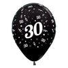 Sempertex 30cm Age 30 Metallic Black Latex Balloons Pack of 25