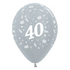 Sempertex 30cm Age 40 Satin Pearl Silver Latex Balloons Pack of 25