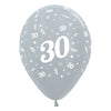 Sempertex 30cm Age 30 Satin Pearl Silver Latex Balloons Pack of 25