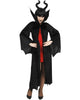 Wear this Dark Queen Black Cape and Headband as an easy dress up outfit for Halloween. Based on the evil fairy Maleficent from Sleeping Beauty, the cape has a high collar and wide sleeves with a horn-style headband.