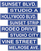 Stick these Double Sided Hollywood Street Sign Cutouts onto your door or walls at your celebrity themed party. Famous street names, white on a blue background and measuring 10cm x 61cm / 4in x 24in. The signs come as a set of 4 with printing on both sides.