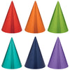Party Cone Hats Foil Rainbow Colours Pack of 12