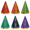 Party Mini Cone Hats Foil Rainbow Colours Pack of 12