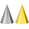 Party Cone Hats Foil Silver & Gold Pack of 12