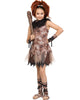 Still feel adorable as a cave girl when you dress in this Cave Girl Cutie Girls Costume for your next fancy dress party. This Stone Age costume features a high neck sleeveless animal print dress with black faux fur around neckline, ragged hem and brow and black tulle underneath the hem, a pair of matching animal print wrist wrap with brown ties and a pair of animal print ankle wraps also with brown ties. As forage around the shrubbery looking for delicious berries and plants to eat, have your trusty club or bone in your hands in case you run into trouble or you have to distract a sabretooth tiger with the delicious bone.
