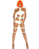 Travel to a different dimension in this Futuristic Element Womens Costume. The costume features a metallic white bodysuit with a high collar and racy cutouts. The catsuit is inspired by Leeloo from the movie The Fifith Element, played by Milla Jovovich.
