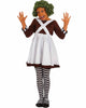 Work in a world full of pure imagination in our Chocolate Factory Worker Girls Costume. The costume features a brown top attached with a white skirt with a ruffled brown hem, white braces and styled with white and black striped cuffs! Plus the costume includes matching white and black socks to finish the costume. Adapted from the iconic Oompa Loompas at the chocolate factory, awesome for Book Week!