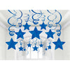Royal Blue Foil Star Hanging Swirl Decorations Pack of 30