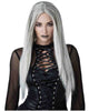 Complete your spellbinding outfit on Halloween with this Gothic Matriach Grey Wig. This long, grey wig has straight bands and a middle part and is the perfect addition to any Witch or Vampire costume. Wear with black or grey lipstick to create a truly gothic look.