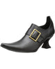 Swirl your cauldron in this scary pair of Black Witch Womens Heels. This haunting pair of black polyurethane shoes has a 7.5cm heel with an interesting wedge heel that is inspired by the wicked witch of the west from The Wizard of Oz and a large cosmetic gold buckle on the outer foot to complete the desired look. The shoe is opened and fastened via a zipper located on the opposite side to the buckle. A fantastic item for any witch cosplay, you just need that iconic hat and broom and you're ready to claim the night.