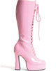 Groove is in the heart with these one of a kind Pink Easy Lace Womens Boots. Its easy lace front is a wonderful way to add your own flair by lacing them in your own preferred way, conveniently fastening for them is actually a zipper located on the inseam. With an enormous 30cm heel the platform for these knee high boots means you'll be saturating your steps in pink. A versatile item that would complete any costume from generic disco girl all the way to something more targeted like Daphne from the unforgettable Scooby Doo.
