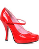 Tap your feet to those party beats on a pair of these Red Patent Babydoll Heels Womens Shoes. Not only are these heels a sophisticated pair but will work for a number of costumes such as snow white. So no matter if it's for an outfit or you're after a pair of stylish red heels that will go with almost any outfit, these are the shoes for you. Shoes come in a shiny red patent finish and feature a stiletto style heel around the back, an attached red strap along the top which has a small bit of elastic under the button so you can slide your foot through easily and within the sole of the shoe is a concealed platform for extra height. Pair these heels with a pair of stockings, tights or socks to complete your look.