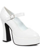 Give your costume the sassy edge it needs when you kick up your heels and strut through the party wearing a pair of these White Eden Patent Chunky Heel Womens Shoes. These pure white chunky platform heels will match almost any costume, with their stylish shiny patent white leather finish, high platform on the front for extra height. To secure the shoes in place, these platform heels also feature an adjustable strap with a buckle fastening. Pair up with our selection of hosiery for a complete look.