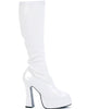 Stand out from the crowd with these White Platform Go Go Womens Boots. These boots are white and feature an inner side zipper and a 12.7cm/5in heel as well as a platform sole. Perfect for any 60s or 70s costume.
