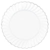 Premium White w/Silver Trim, Scalloped w/Metal Trim 18cm Round Plate Pack of 20