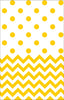 Top off your table setting with this Sunshine Yellow Chevron Tablecover to add a pop of striking bright colour while also protecting your table from mess when catering your next birthday party or event! The tablecover is white and features bold yellow zig-zags and polka dots along both long edges of the tablecover. This bold Sunshine Yellow is great for birthday parties, holiday functions and more to match with the colour scheme of your event while keeping things interesting with its fun zig-zag pattern! Combine with our range of Sunshine Yellow, Sunshine Yellow Chevron and more coloured party supplies including party plates, napkins, cups and more to create the right look for your party!