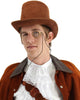 This fabulous Steampunk Adventurer Mens Costume has everything you'll need to carry off this look. The sci-fi fantasy inspired costume includes a brown fitted vest with chain detail, a faux leather and buckled shoulder guard and one fingerless glove. A top hat with goggles, belt with hip satchel, striped pants and faux leather boot tops complete the costume.