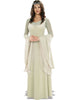 Join the half-elven in this Lord of the Rings Queen Arwen Womens Costume. This pretty costume features a long pale green velvet effect dress with bell sleeves with net layers, a lace neckline and lace sleeve detailing. A silver beaded headpiece is also included to complete the look.