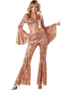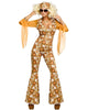 You will be groovin' to the retro beats and psychedelic waves in this Discolicious womens costume. A funky print matching top and bottom with bell sleeves and flared pant bottoms. A coordinated scarf comes with this one. Time to hit the discotheque and dance the night away.