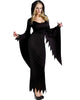 This Officially Licensed Morticia Womens Costume is elegant, has great impact and yet is very comfortable. Featuring long draping sleeves with a spiderweb motif and a fishtail hem, this dress will have you looking perfectly sinister for Halloween or your next dress up party.